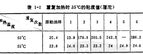 2.加熱溫度還應考慮原油的流變性的變化,因為原油加熱溫度如果低于蠟的熔點時僅能使部 分石蠟熔解,這樣原油再冷卻時往往形成更加堅實的網絡結構,使原油粘度及凝固點升高,流度 性變壞,而且重復加熱的次數越多,原油流變性變得越壞。某油田原油樣品在50℃和55℃重復加熱后粘度變化如下: