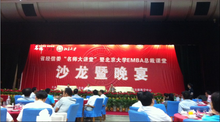由省經(jīng)信委、北京大學(xué)邀請名師大講堂知名講師,協(xié)作舉辦的EMBA總裁課程,眾多企業(yè)的管理層人員齊聚一堂交流企業(yè)管理經(jīng)驗(yàn)。此次授課為期2天,并與今日落下帷幕。晚宴上,省信委領(lǐng)導(dǎo)出席主持,話語中透露著對各個(gè)行業(yè)管理人員的期許,正是因?yàn)橛心銈兊恼_的領(lǐng)導(dǎo),才能延續(xù)企業(yè)的活力,才能振興國民經(jīng)濟(jì)。晚宴上處處洋溢著積極上進(jìn)的熱情氛圍。